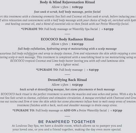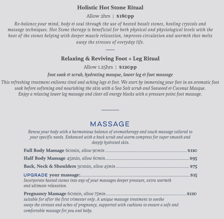 Choose from our pre-designed packages or mix and match from our spa treatments to create your own experience